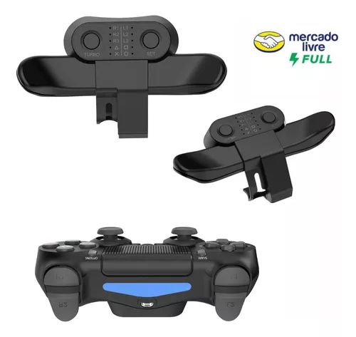 Este produto é um acessório que adiciona 2 botões extras na parte traseira do controle do ps4. Com ele você pode mapear os botões por meio do botão de programação. O adaptador também conta com um outro botão que ativa a função turbo, que serve para repetir uma ação em sequência sem precisar apertar várias vezes o botão, basta segurar e pronto!!!